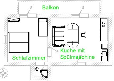Die Ferienwohnung hat einen schönen Südbalkon. Sep. Schlafzimmer, Küchenzeile. Frühstückecke und WLan.